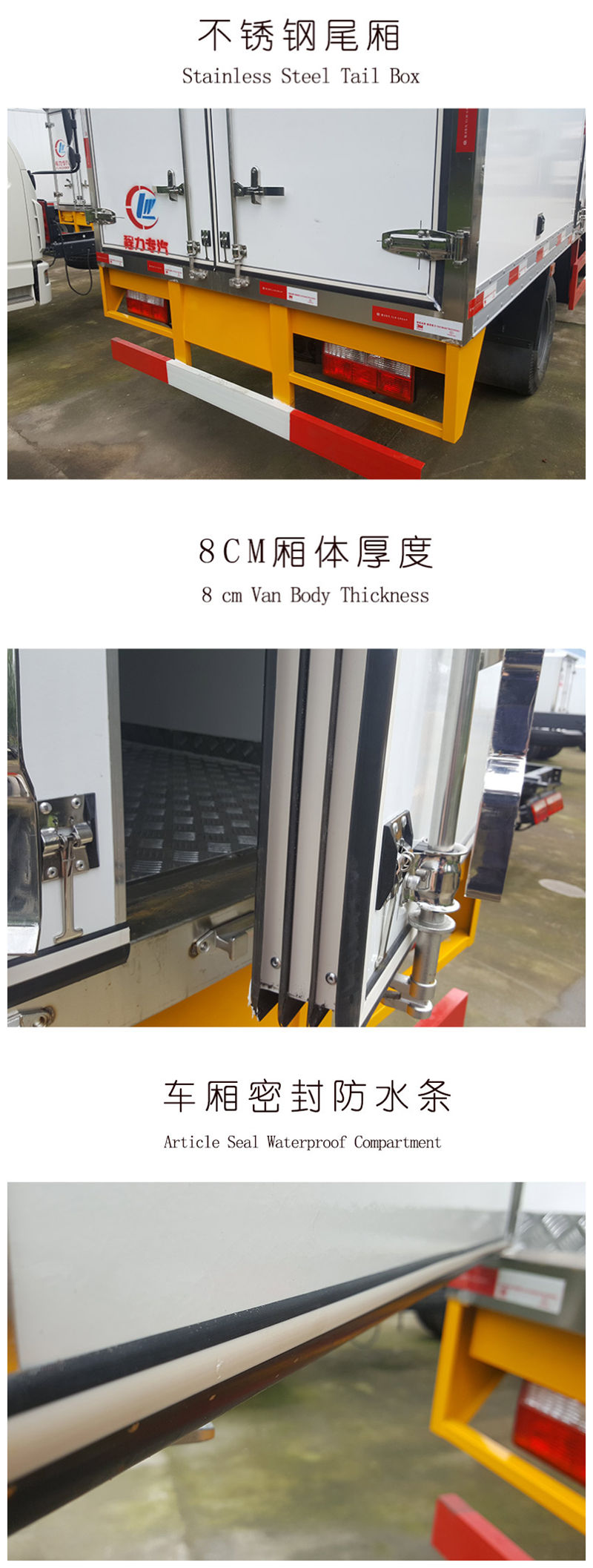 湖北程力专用汽车有限公司引进冷藏保温车专用技术与真空吸附设备制造出新一代冷藏保温车。生产的冷藏车厢体采用整体骨架“三明治”粘接式工艺,内外壁板选用国内优质的有机玻璃钢板(可选彩钢板,铝合金,不锈钢);中间保温材料选用8mm厚进口聚氨酯;厢体周边铝合金包边;底板采用铝花纹板,保温性好,整体强度大;厢底板选装通风槽,便于冷气流通全车,并保持厢内温度均衡。